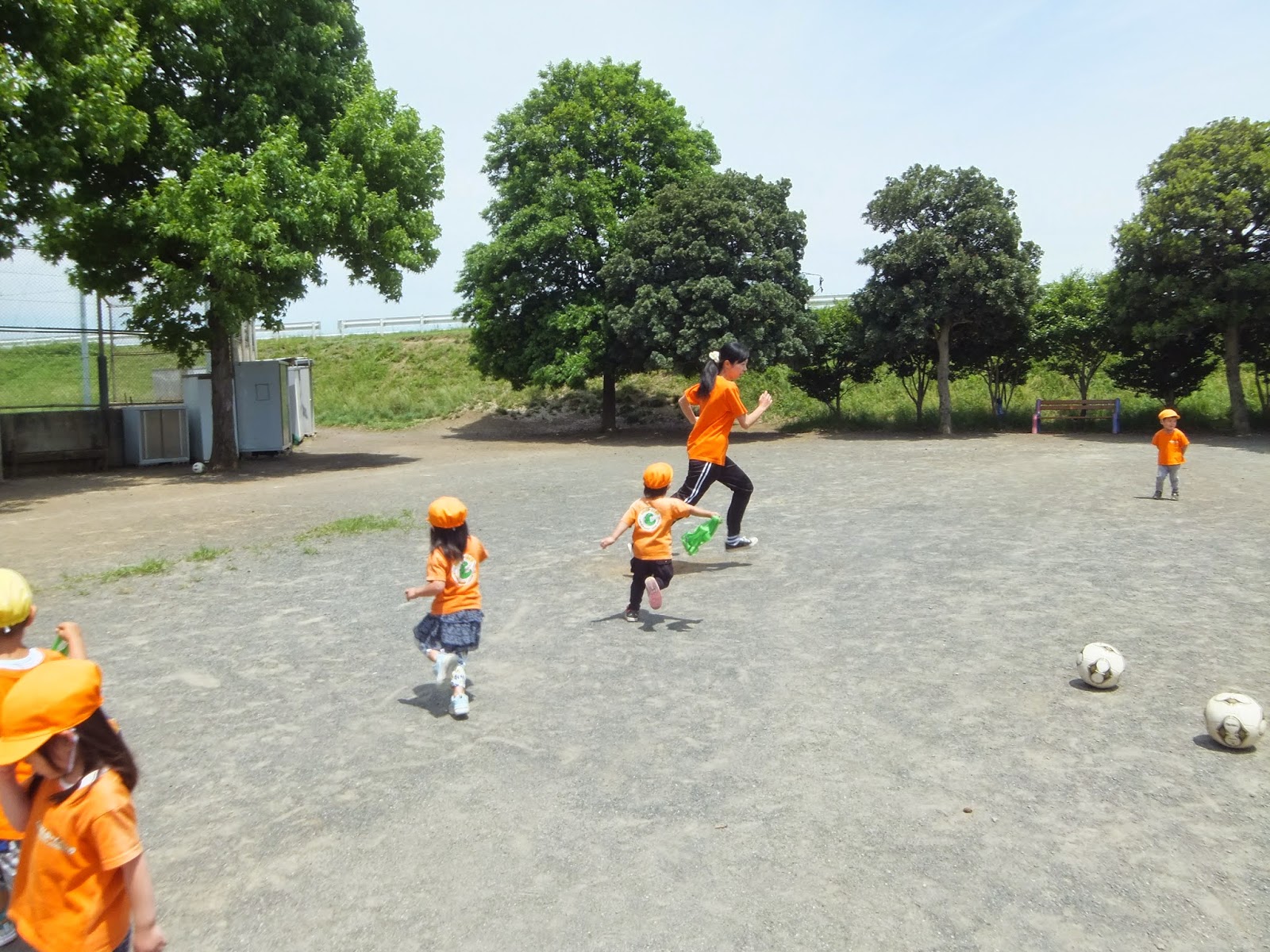 おにごっこは2セット行い、ボールに触れる前から汗びっしょりのみんなでした。