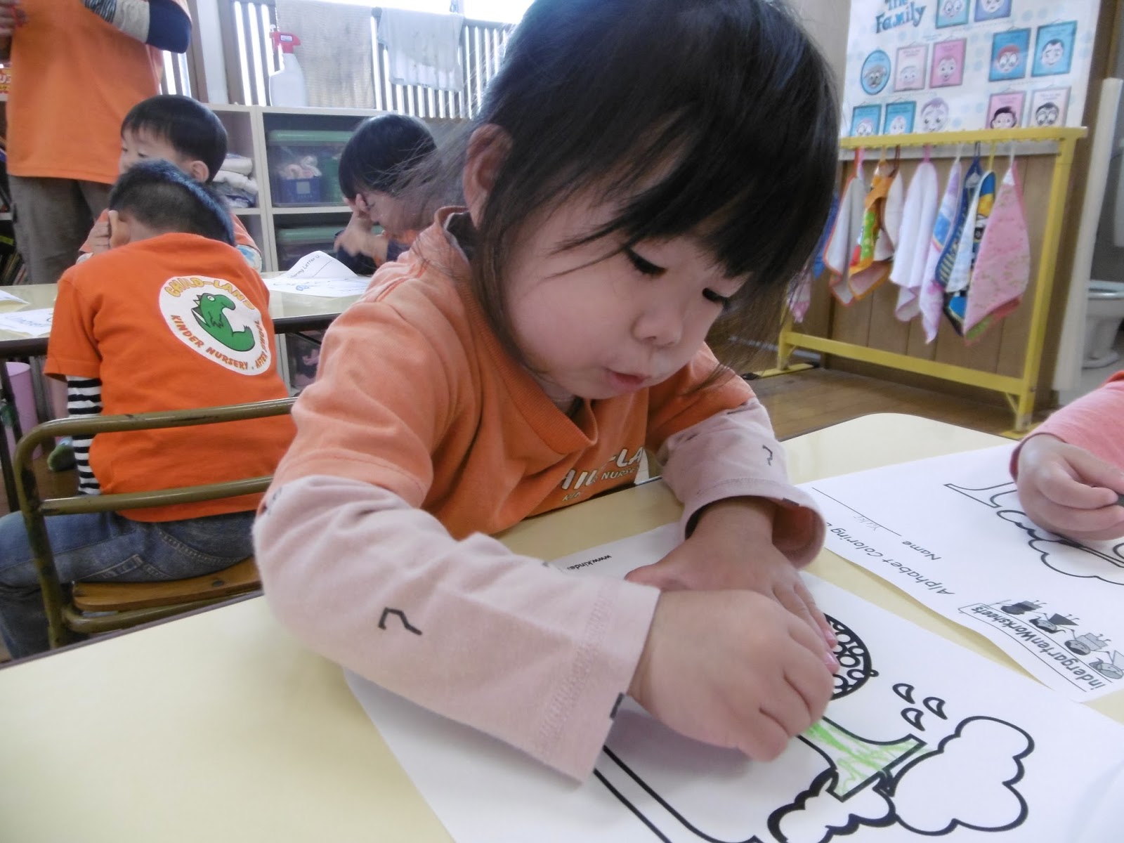 今日は色塗りをしました。マイケル先生の見本のように