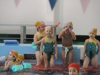 スイミングの観覧会でプールサイドまで行っての見学が出来ました。