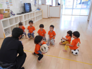 サッカーレッスンのスタート から始まった今日はたっぷりボール使って