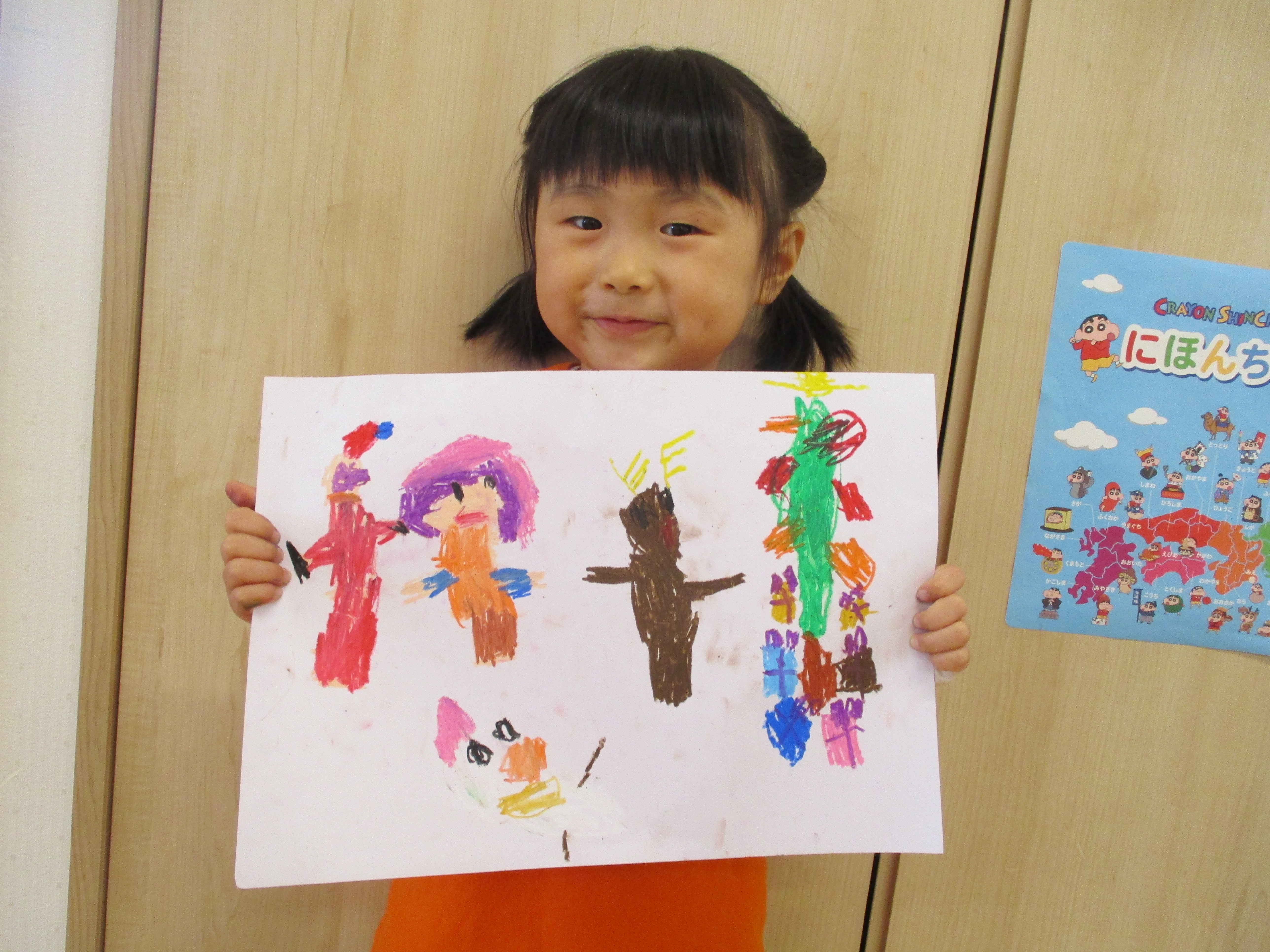 13日 MonkeyチームとBearチームは絵画教室がありました。クリスマスをテーマに素敵な絵を描いています。