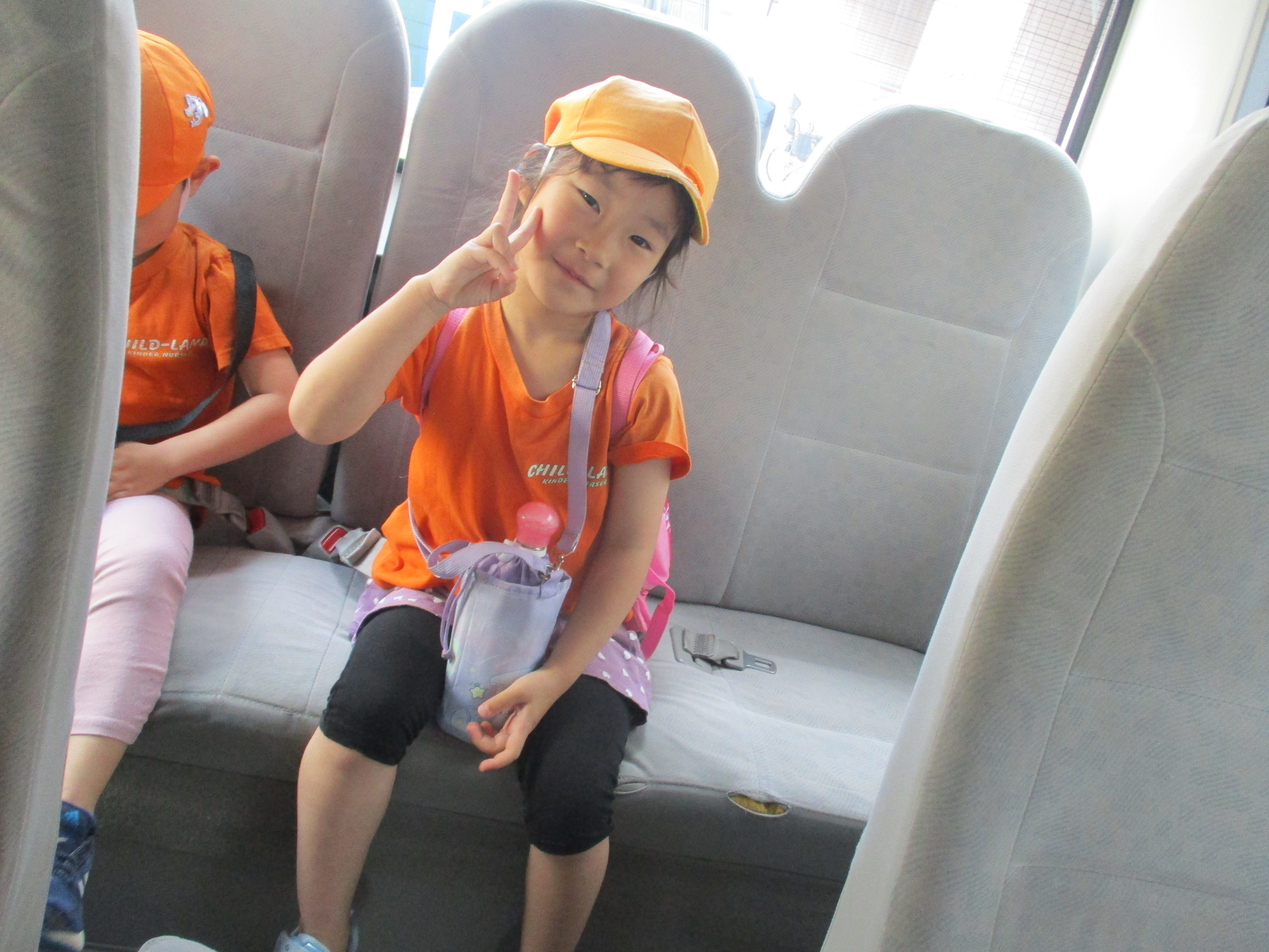 スイミングの日!Busも楽しみに乗ってくれる子ども達です。車窓を眺めたり、しりとりゲームをしたりしてBus時間も満喫しています。