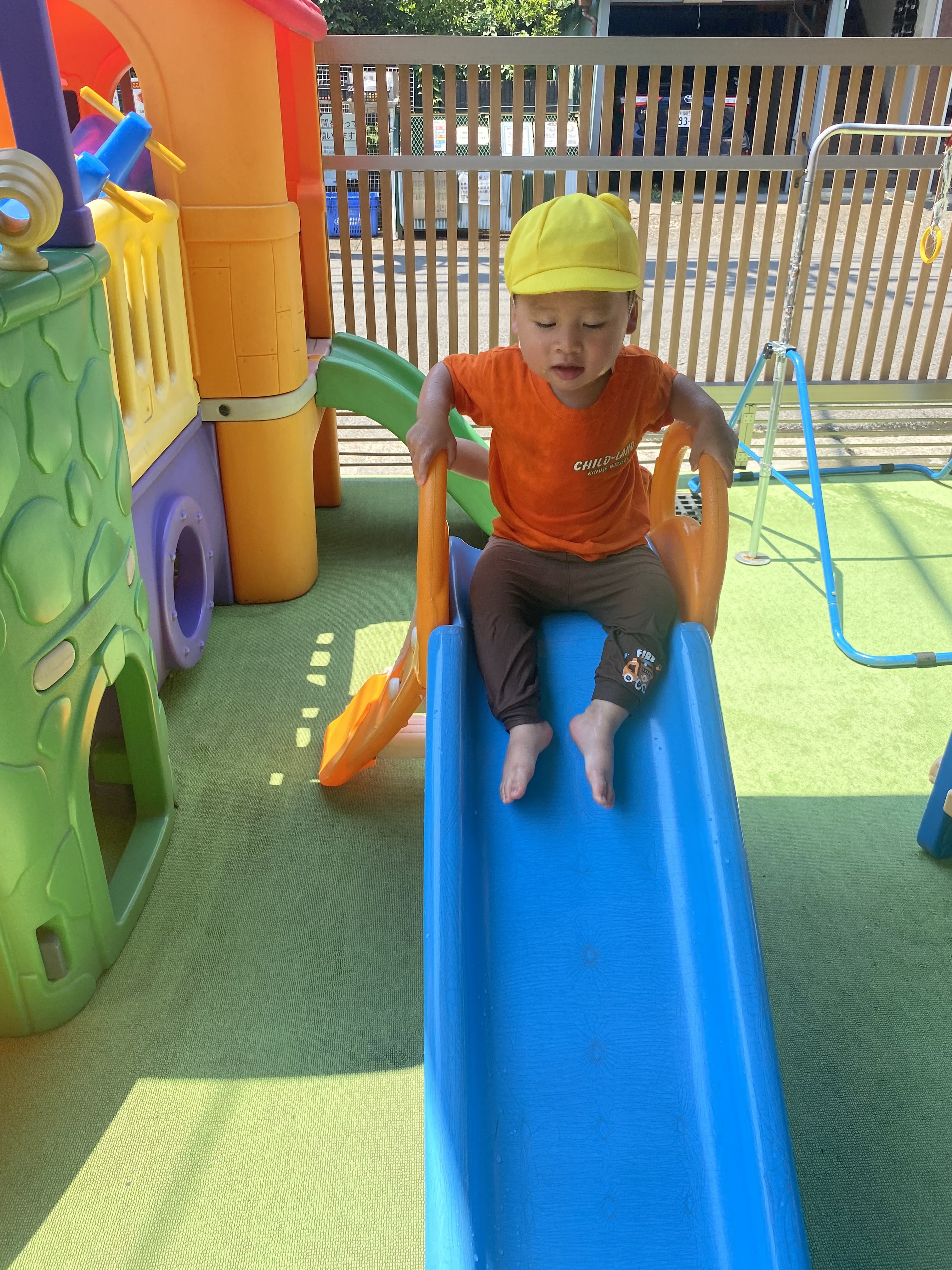 汗をかいた後水分補給をたっぷりとり園庭で水遊び。