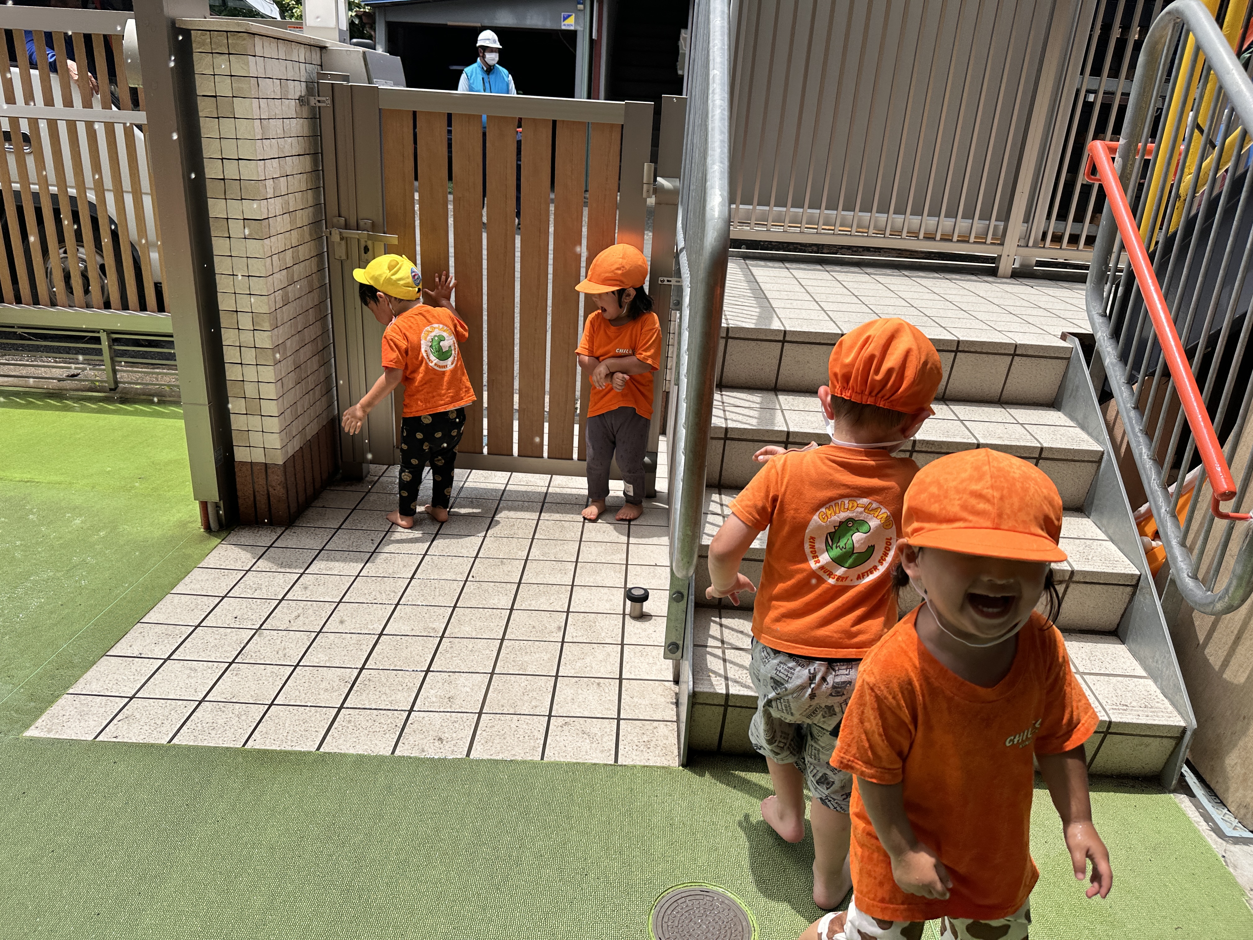 スプリンクラーのようなおもちゃが楽しいようでみんなきゃーきゃー言いながら、