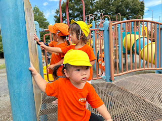 少し遠い公園へ行き、遊具で思いっきり身体を動かして遊んだ子ども達です(^^)